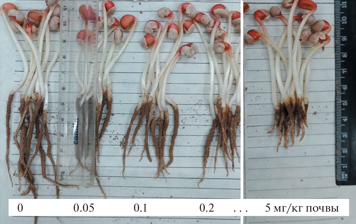 In a series of consecutive vegetation experiments on biotesting on samples of sod-podzolic cultivated soil after its treatment with herbicides from the class of sulfonylureas: Magnum, VDG, metsulfuron-methyl 600 g/kg, manufactured by August and Alistair Grand, MD, diflufenican 180 g/l + mesosulfuronmethyl 6.0 g/l, iodosulfuron-methyl-sodium 4.5 g/l + mephenpyrdiethyl 27 g/l (antidote), manufactured by Bayer. The residual phytotoxicity of these preparations for seedlings of sensitive cultures of white lupin (Lupinus albus) and masha (Vigna radiata) was studied. The initial soil samples were taken in the field on the 5th day after herbicides were applied in the field in winter wheat crops using 2 different tillage technologies: traditional on the basis of dump plowing and zero tillage. According to the results of biotesting samples at a temperature of 20°C and humidity at the level of 60% soil moisture capacity, it was shown that the half-life of herbicides (DT50) was reached after 40 ± 3 days of incubation, and detoxification to the level of 70–80% occurred 200–240 days after the introduction of herbicides into the soil. Regardless of the method of tillage and the applied herbicide, 2 years after the application of herbicides, the suppression of test crops at the level of >10% of the control was detected. White lupin and mash are highly sensitive to the effects of micro-quantities of herbicides of the sulfonylurea group, therefore it is recommended to use these test cultures to determine the residual phytotoxicity of the soil. The manifestation of the aftereffect of sulfonylureas on legumes is shown, which is important even in specialized crop rotations designed for zero tillage.