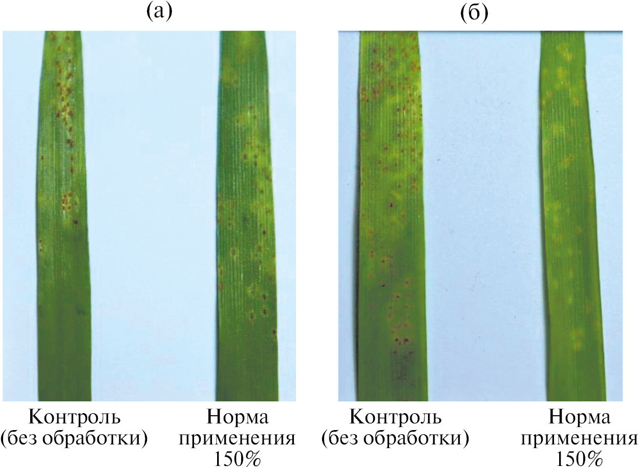 Семена восприимчивого сорта высевали в вазоны объемом 0.5 л и при появлении всходов искусственно инфицировали северокавказской популяцией возбудителя болезни [14]. Обработку фунгицидами проводили при развитии фитопатогена не более 5%.