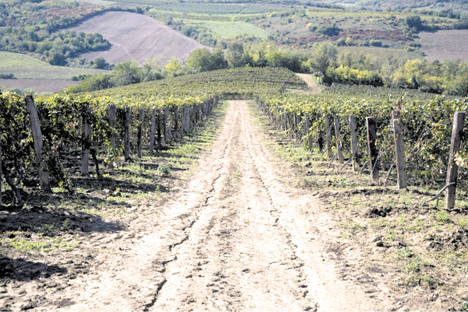 Рис. 1. Мелкоструйчатый размыв почвы на колеях магистральной дороги виноградника в автономном крае Воеводина Республики Сербия после продолжительных ливневых осадков (фото И.В. Андреевой).