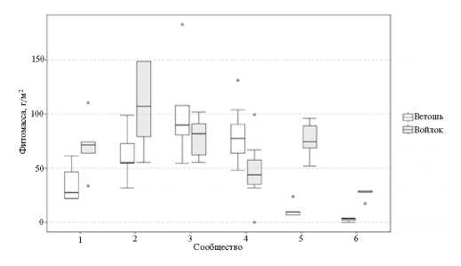 Запасы. В каждом сообществе выявлено наличие ветоши и степного войлока, но размер их накопления существенно различался в разных сообществах (рис. 1) и зависел в основном от запасов ветоши, формирующихся в конце вегетационного сезона.