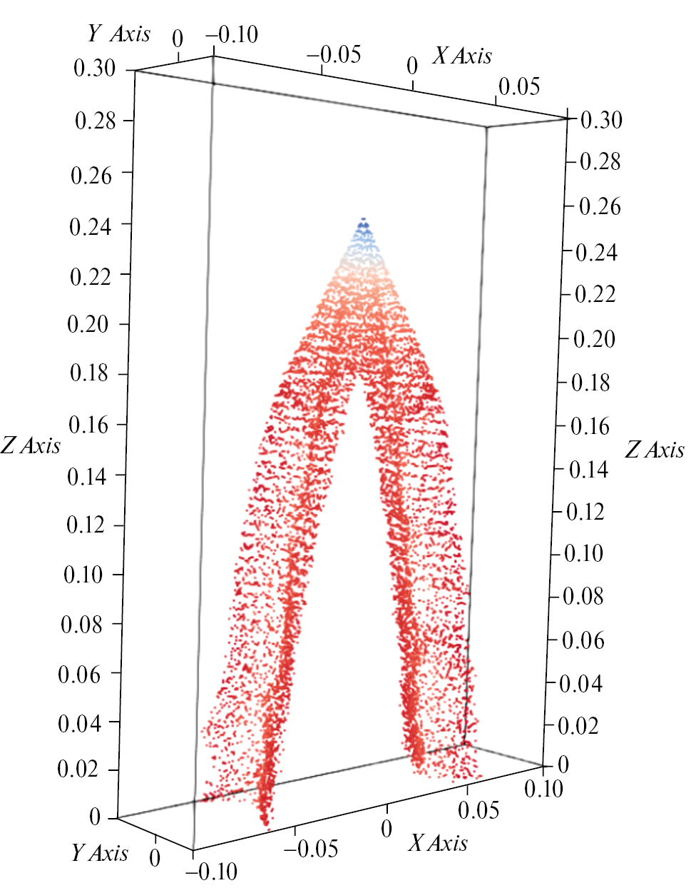 В данном исследовании конфигурация форсунки определяла только параметры капель и конуса распыла. Капли рассматривались как идеальные сферы, размеры которых определялись по среднему диаметру d10. Конус распыла был задан внешним половинным углом θout и коэффициентом заполнения Δθ, который показывал толщину стенок конуса, где Δθ = 100% соответствовало полному конусу.