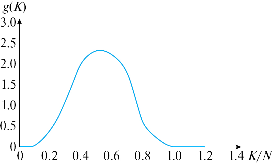 - С использованием рис. 3 строится кривая плотности распределения критерия К g(K) = f(K).