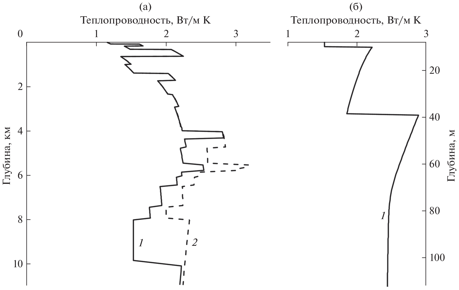 Numerical reconstructions of the thermal regime of the lithosphere of the West Siberian basin in the Koltogor-Urengoi graben in the vicinity of the Tyumenskaya SG-6 superdeep well are used to analyze the depth distribution of thermal conductivity of basin rocks. Five depth intervals which differ in the character of changes in thermal conductivity of rocks are distinguished: the permafrost zone, the sedimentary section below this zone, the zone of anomalous rock weakening, the consolidated crust, and the mantle. The algorithms for calculating the thermal conductivity are considered and the main factors affecting its change with depth are determined for each of the five intervals. A sharp decrease in the thermal conductivity of rocks in the bottom part of the sedimentary cover and in the basement top in the vicinity of the SG-6 well is associated with rock weakening due to tectonic fracturing and hydrothermal erosion. The analysis suggests that the stationarity conditions of the process are not observed in optical scanning thermal conductivity measurements and, therefore, this method may overestimate the true thermal conductivity of rocks.