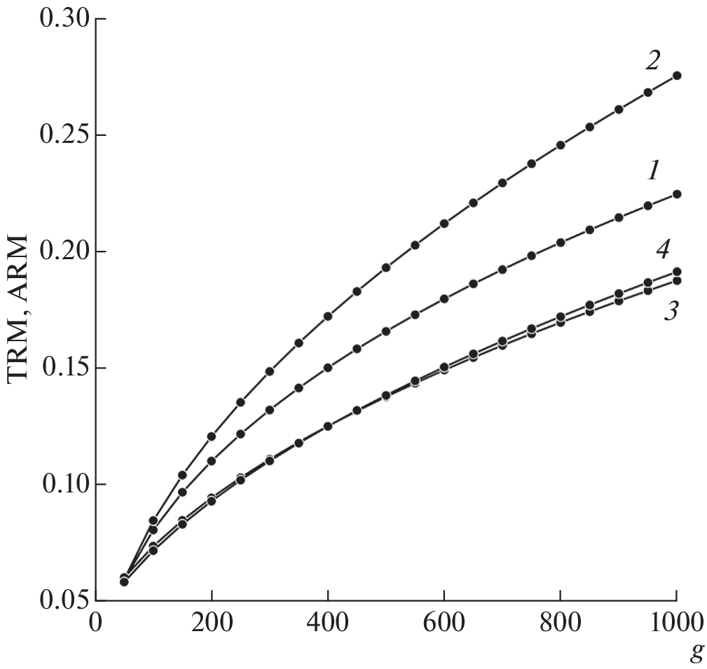 Abstract—A new approach to the solution of kinetic equations describing the process of formation of anhysteretic remanent magnetization (ARM) is proposed, which made it possible to accelerate the numerical calculation of the process of formation of ARM by two orders of magnitude for uniaxial oriented non-interacting single-domain particles, while practically not yielding in accuracy to a strict numerical solution. It follows from the calculation results that the susceptibility of ARM is entirely determined by the magnitude of the particle’s coercivity parameter. The data of the previous approximate calculations of ARM value are compared with the exact results presented here and it is shown that the discrepancy between the exact data and the approximate estimates increases with the growth of g, but remains relatively small, within 23%. The proposed algorithm for the rapid calculation of kinetic equations allows us to analyze with physical rigor the method of pseudo-Thellier estimation of paleointensivity for an ensemble of single-domain particles, which is supposed to be done in subsequent works.