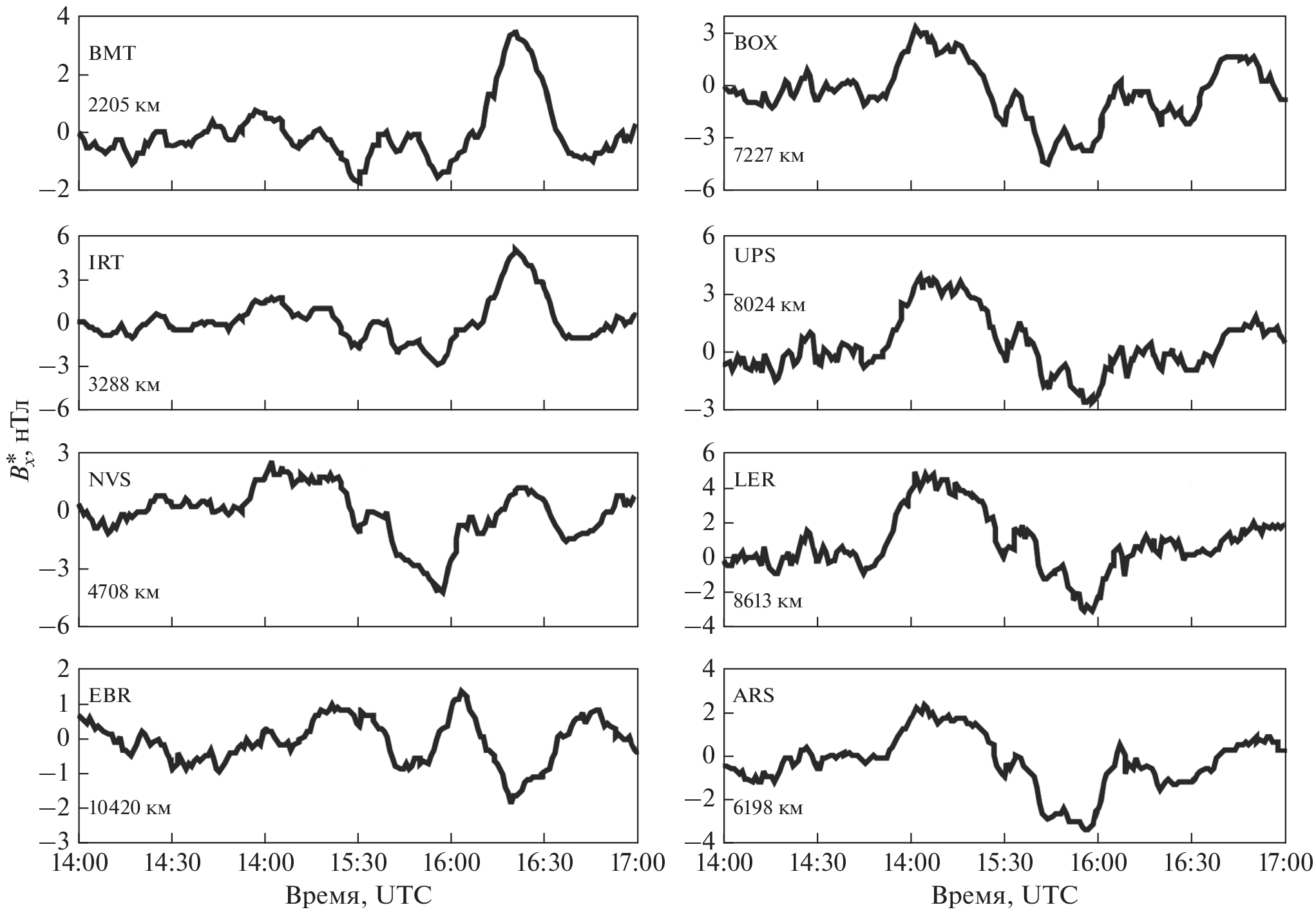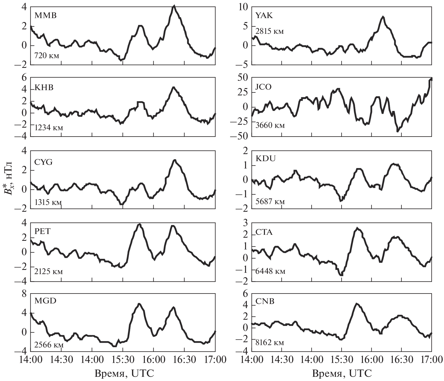 - Xu G., Han P., Huang Q., Hattori K., Febriani F., Yamaguchi H. Anomalous behaviors of geomagnetic diurnal variations prior to the 2011 off the Pacific coast of Tohoku earthquake (Mw = 9.0) // J. Asian Earth Sciences. 2013. V. 77. P. 59–65.