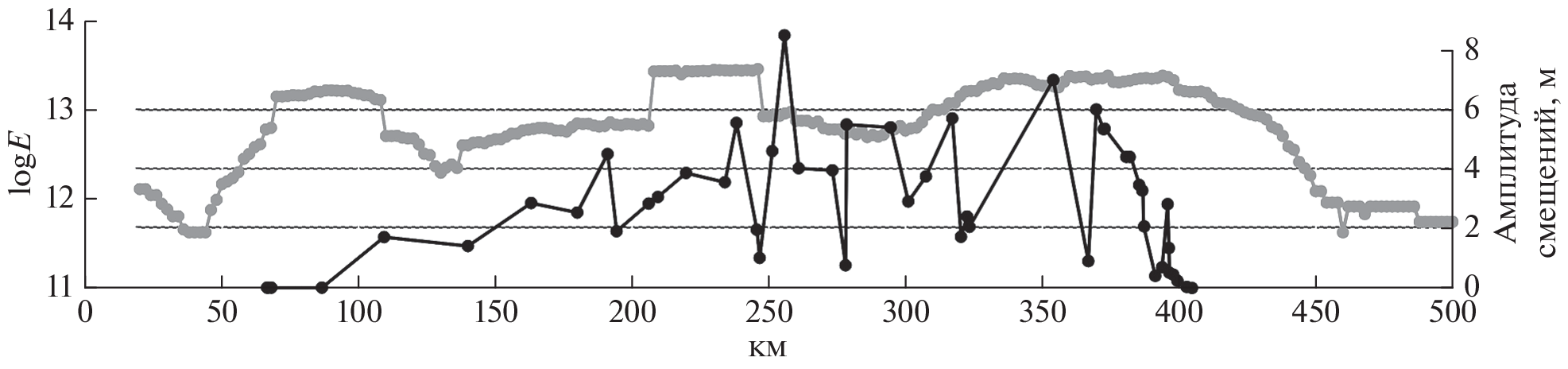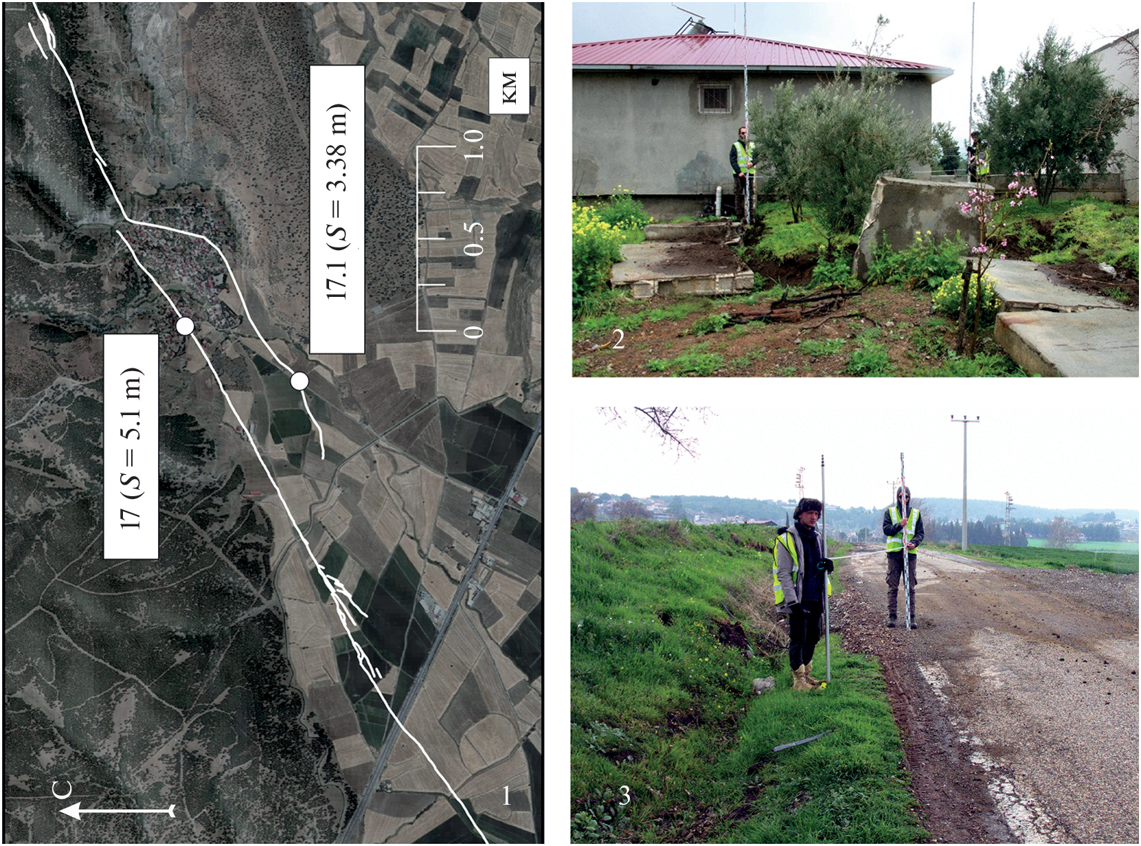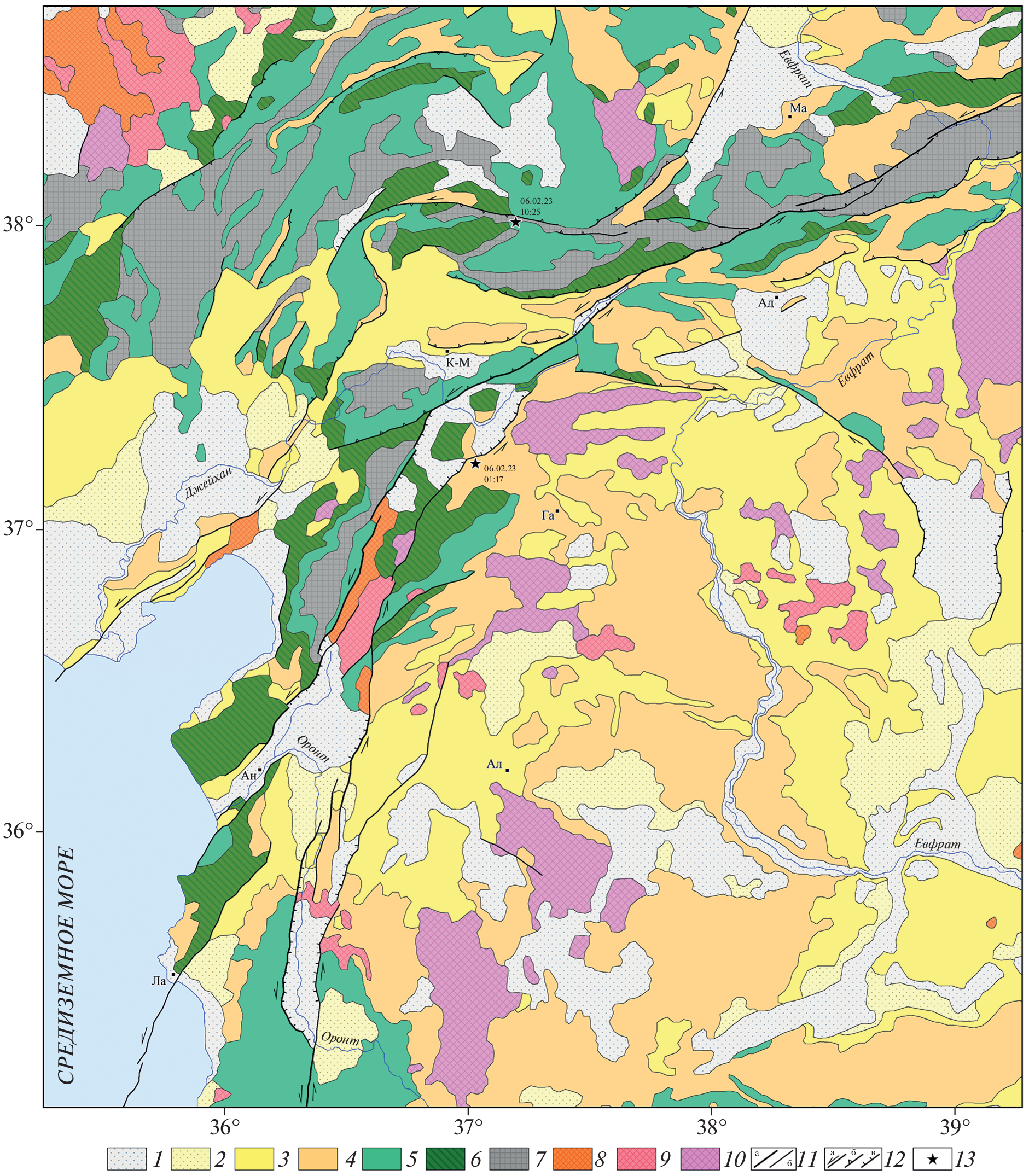 —During the East Anatolian earthquake with Mw = 7.8, which occurred on February 6, 2023 at 1:17 UTC, the 361 km long segment of the NE-trending East Anatolian active left-lateral fault zone (EAFZ) was activated. A left-lateral displacement took place at a distance of 318 km on formed seismic ruptures. Its maximum magnitude of 8.5 m is registered northward of the earthquake epicenter. To the northeast, the displacement of several meters is maintained over a significant length of the activated segment and is accompanied by uplift of the south-eastern side of the ruptured zone at up to 1.5 m. To the southwest of the maximum displacement area, the strike slip decreases from it at shorter distances compared to the northeastern part and the vertical component varies, although the southeastern side is mostly uplifted. In the terminal southwest, the strike slip is replaced by normal faults, gaping fractures, and other manifestations of transverse extension, which are accompanied by landslides and are mainly secondary seismic dislocations. Left lateral slip also occurred at the northern ends of the western and eastern branches of the Dead Sea Transform (DST), adjacent to the EAFZ from the south. Despite the fact that the energy distribution of numerous aftershocks along the EAFZ is generally proportional to the distribution of offsets on seismic ruptures, the slip on the EAFZ occurred during and immediately after the main shock. In the northern part of the DST, a significant decrease in the amount of energy released by strong earthquakes during the last centuries has been established. We consider that the tectonic stress accumulated in the northern part of the DST became the important geodynamic source of the East Anatolian 02.06.2023 earthquake.