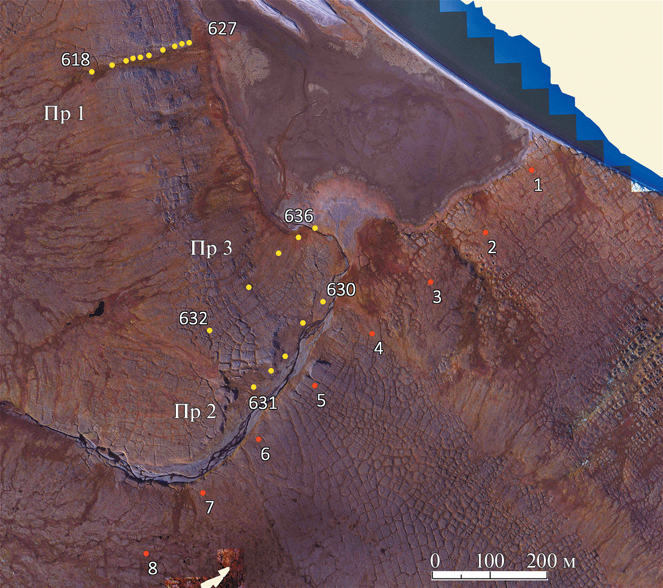 —In thus paper, we present the first results of complex geological and geophysical studies of active tectonics in the northeast of Taimyr, carried out during the expedition of the Northern Fleet and the Russian Geographical Society in 2020. At the foot of the Byrranga Mountains, a wide zone of active fault-folded tectonic deformations was identified and studied. The general kinematics of displacements is reverse-thrust with signs of shear. The structural style of young tectonic deformations bears a direct resemblance to well-studied structural analogues of the Central Asian seismic belt. The Taimyr seismotectonic zone reveals both spatial and genetic isolation. It has an individual model of the Late Cenozoic geodynamic evolution and modern seismotectonic regime, which differs sharply from the Laptev Sea rift zone adjacent to the east. A complex of geological and geophysical methods has shown high efficiency of application in the Arctic to identify young fault-fold structures, which are potential sources of strong earthquakes.