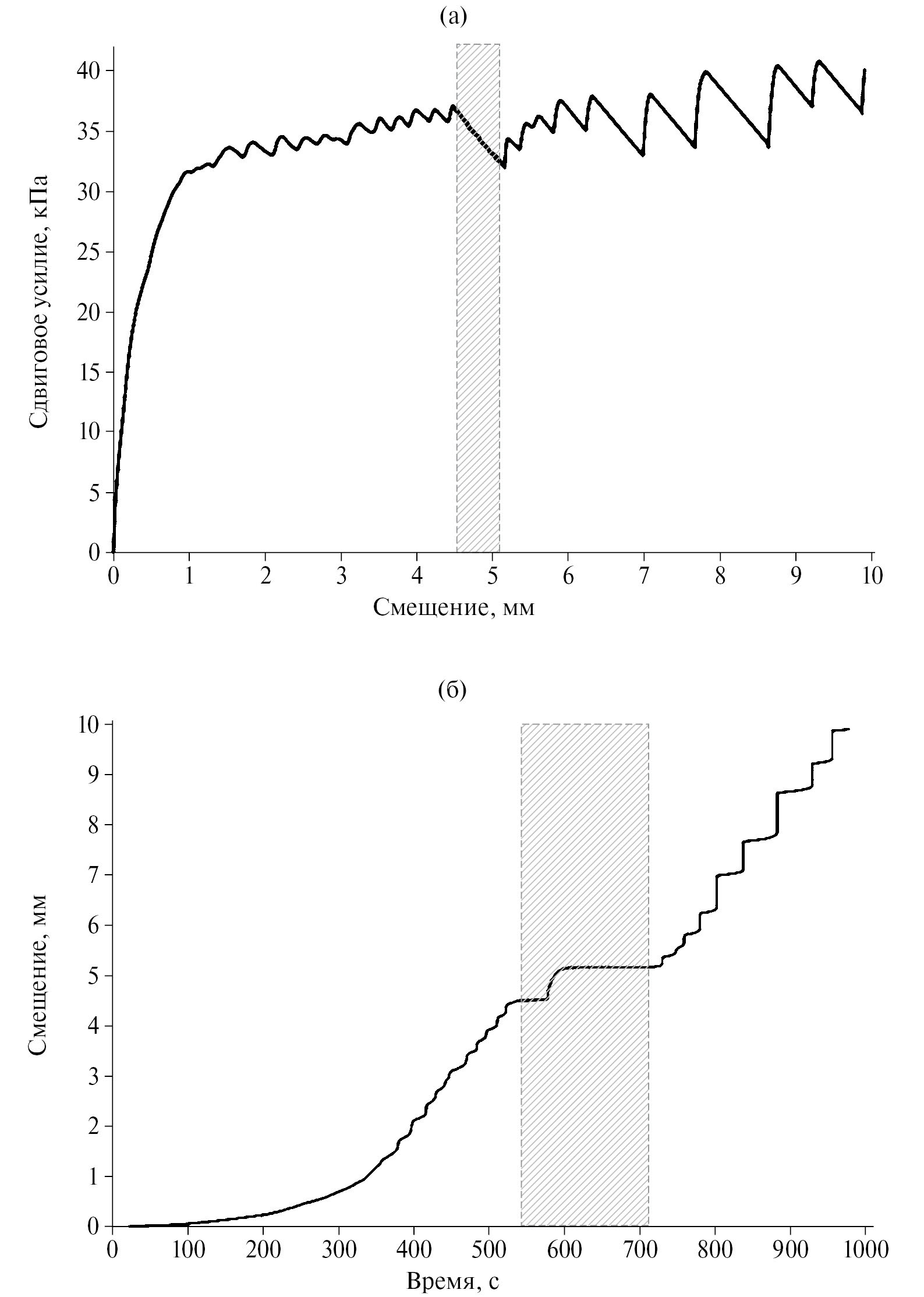 Существенную роль играют и механохимические процессы [Бернштейн, 1987]. Разупрочняющее действие воды связано с накоплением разрывов Si–O–Si связей на фоне механических напряжений в присутствии молекул воды, что приводит к уменьшению коэффициента трения филлосиликатов. Кроме того, поверхность минералов листовой структуры, которые регулярно обнаруживаются в зонах скольжения разломов [Kameda et al., 2011], притягивает молекулы воды, образуя тонкую пленку между двумя соседними пластинами [Renard, Ortoleva, 1997; Moore, 2004]. Влияние адсорбированной воды на степень снижения фрикционной прочности непосредственно продемонстрировано в лабораторных экспериментах на образцах мусковита [Kawai et al., 2015].