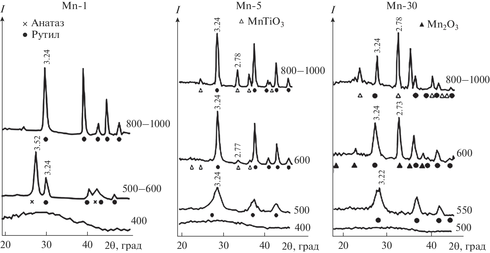 31. Ivanova T., Harizanova A. Characterization of TiO and TiO–MnO Oxides Prepared by Sol–gel Method // Solid State Ionics. 2001. V. 138. P. 227–232. https://doi.org/10.1016/S0167-2738(00)00798-0