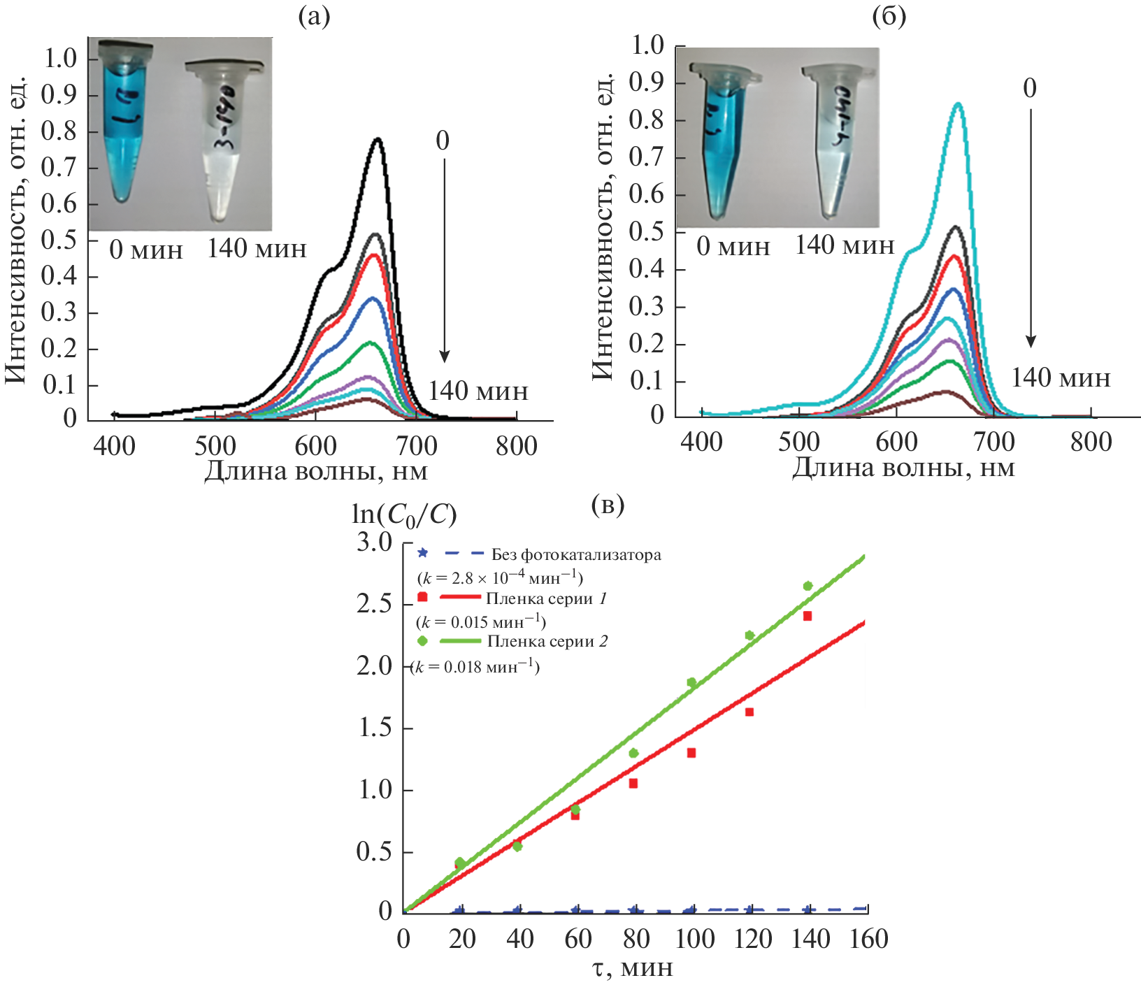 - Киселев В.М., Евстропьев С.К., Стародубцев А.М. Фотокаталитическая деградация и сорбция метиленового синего на поверхности оксидов металлов в водном растворе красителя // Опт. спектроскопия. 2017. Т. 123. № 5. С. 798–805. https://doi.org/10.7868/S0030403417090173