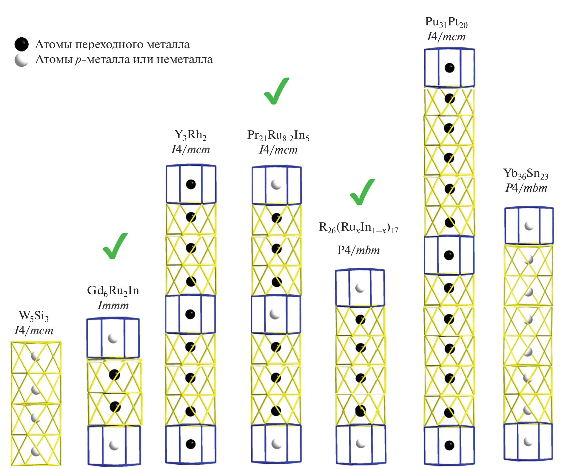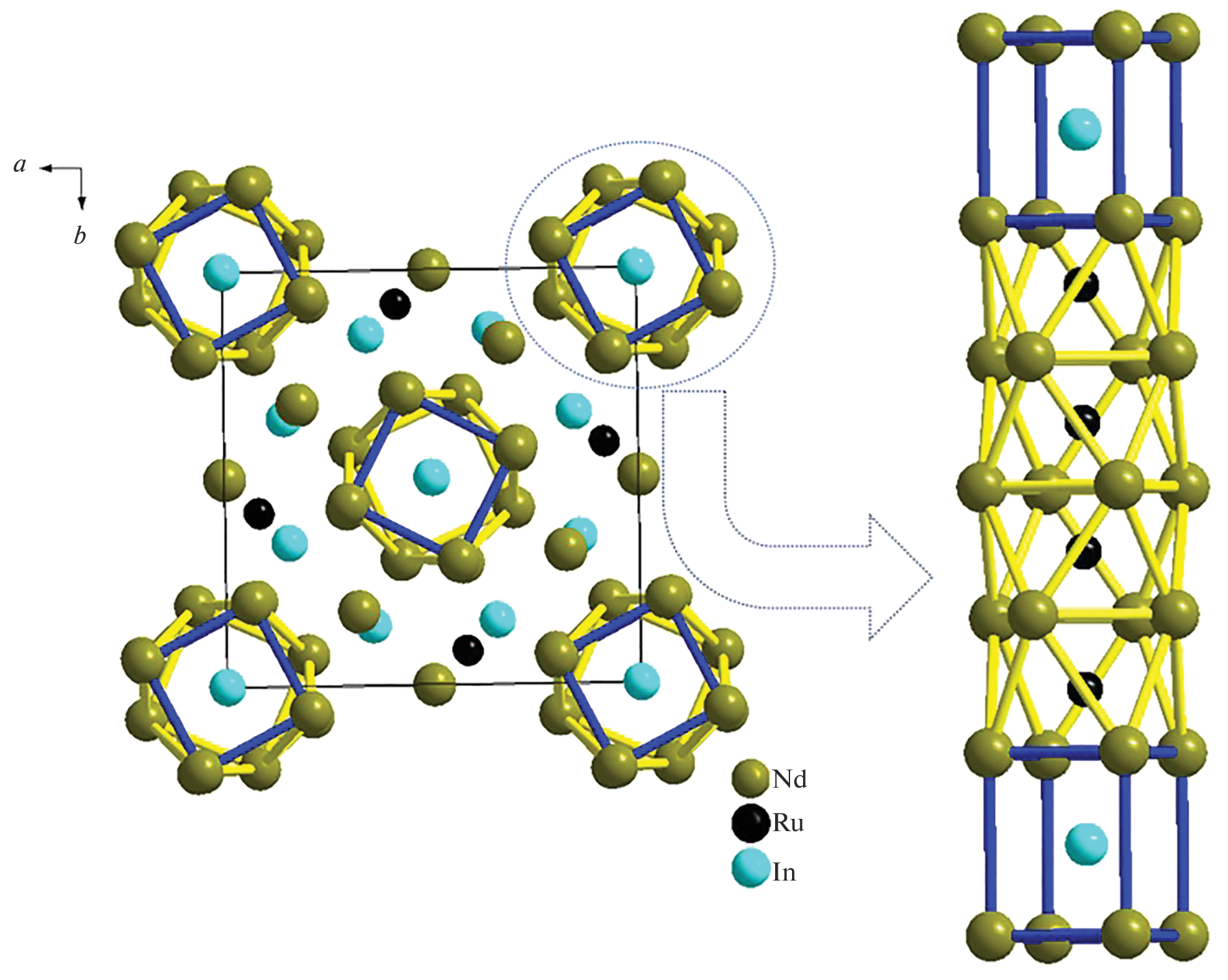 - Tursina A.I., Cherviakov S.G., Noël H., Chernyshev V.V., Seropegin Y.D. Lanthanum Ruthenium Indide, La21Ru9+xIn5–x (x = 1.2) // Acta Crystallogr., Sect. E: Struct. Rep. Online. 2010. V. 66. P. i40. https://doi.org/10.1107/S1600536810014509