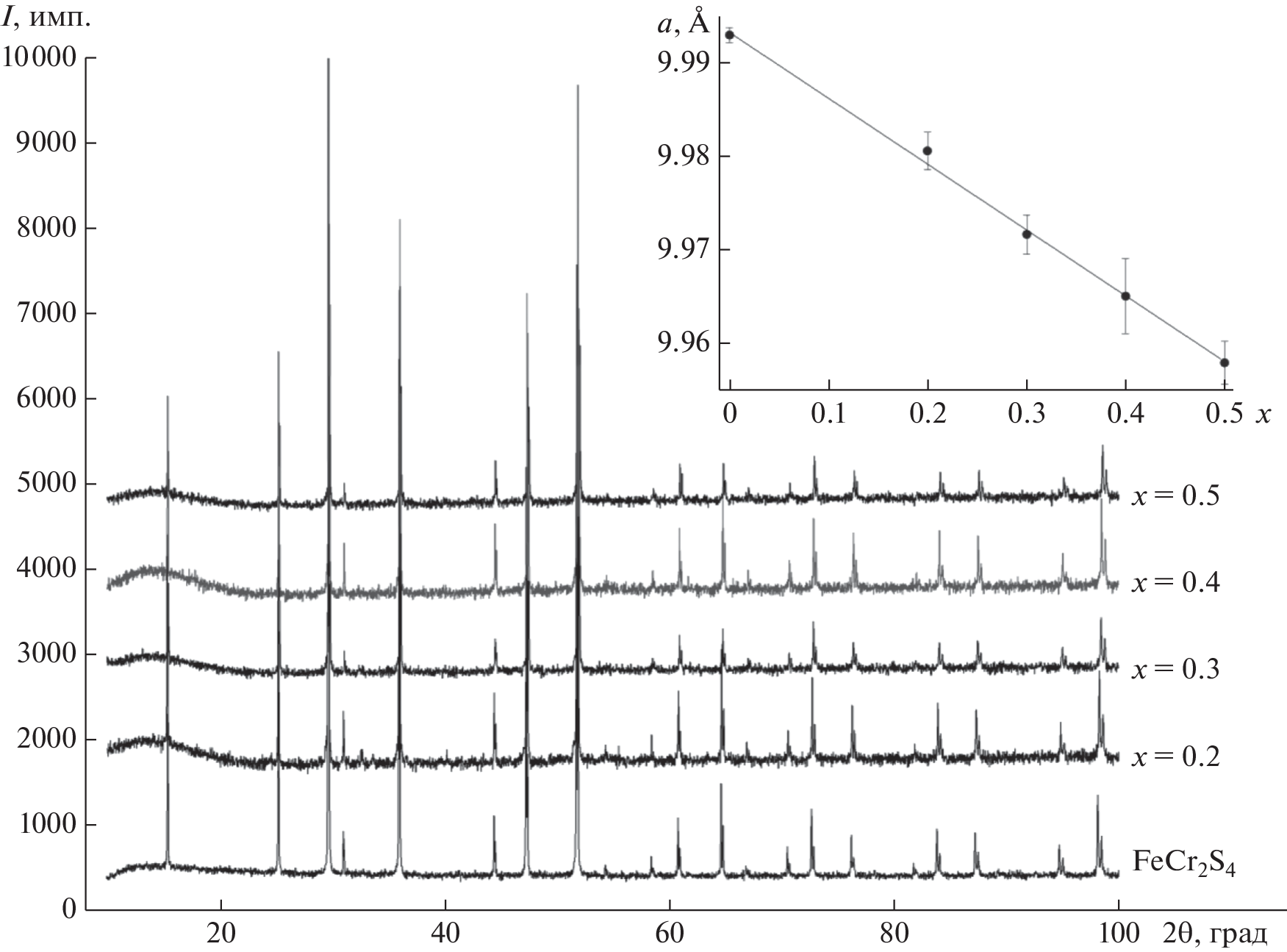 - Lotgering F.K., Van Stapele R.P., Van Der Steen G.H.A.M., Van Wieringen J.S. Magnetic Properties, Conductivity and Ionic Ordering in Fe1–xCuxCr2S4 // J. Phys. Chem. Solids. 1969. V. 30. P. 799–804. https://doi.org/10.1016/0022-3697(69)90274-1