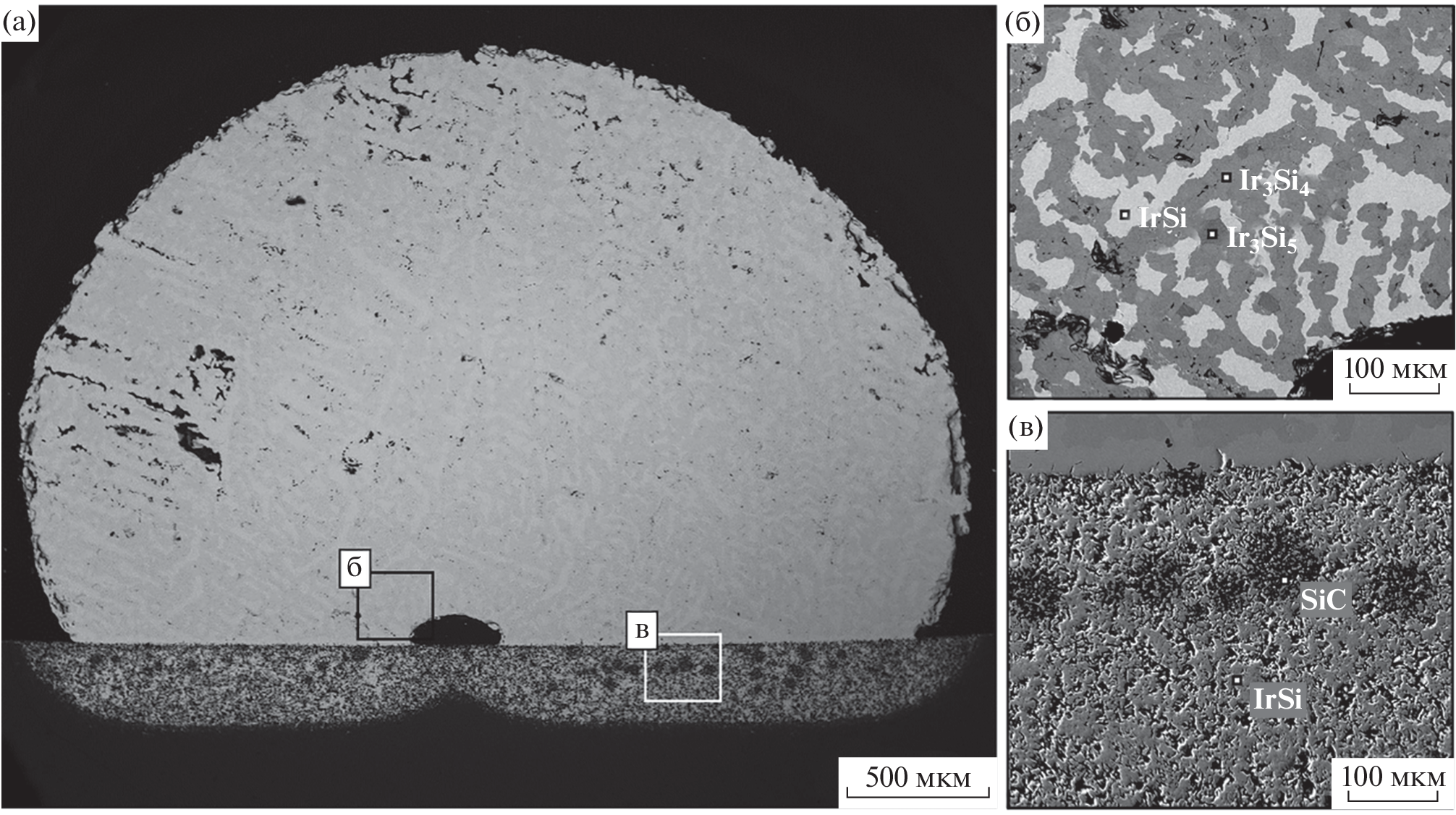 Взаимодействие иридия с карбидокремниевой керамикой с участием жидкой фазы