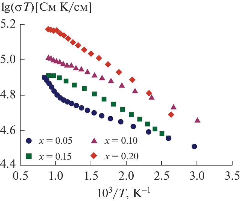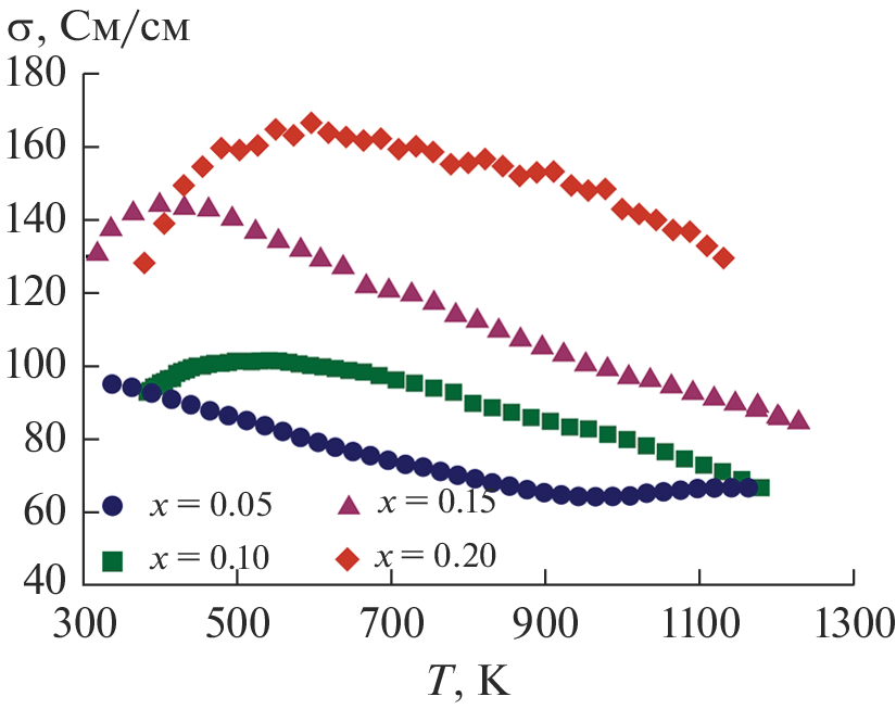 - Thiel P., Populoh S., Yoon S., Saucke G., Rubenis K., Weidenkaff A. Charge-Carrier Hopping in Highly Conductive CaMn1−xMxO3−δ Thermoelectrics // J. Phys. Chem. C. 2015. V. 119. P. 21860–21867. https://doi.org/10.1021/acs.jpcc.5b05882