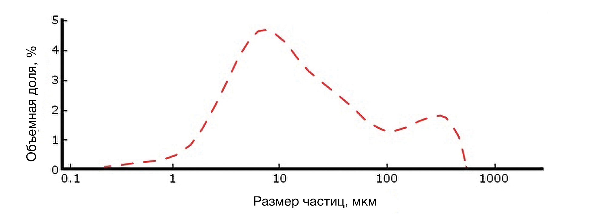 Рис. 7. Дифференциальное распределение по размерам композиционного порошка Ti с диборидом гафния