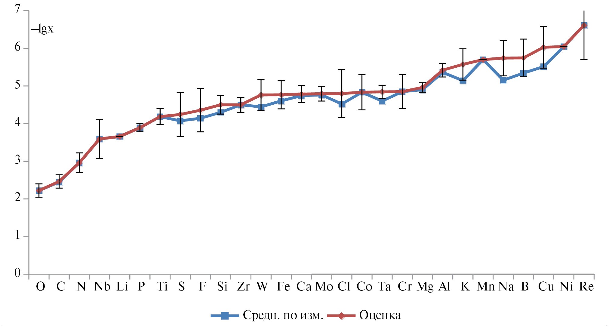 Образец | Организация, год | Nx | Ny | –lgSumx | –lgSump | ±ΔlgSump | Основные классы примесей | lgSumK±ΔlgSumK |