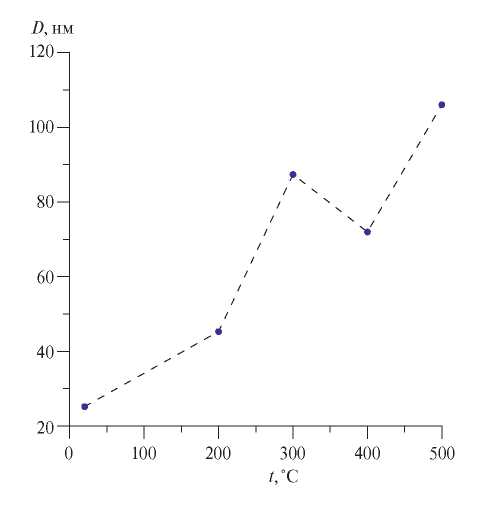 Рис. 8. Зависимость размеров ОКР от температуры.