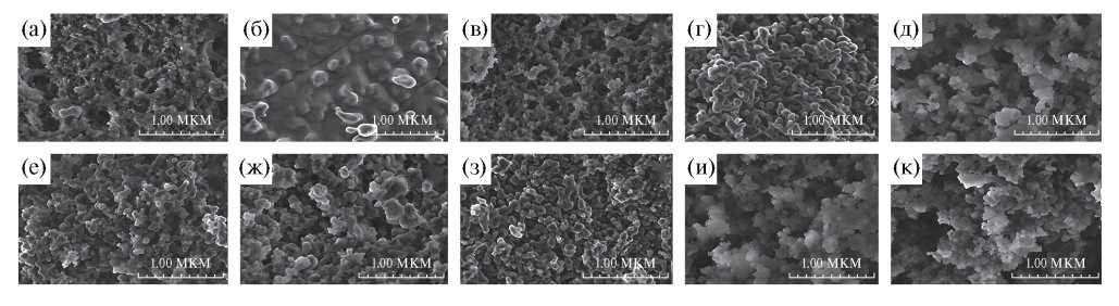 В микроструктуре прекурсора А8 (рис. 4ж) наблюдаются частицы размером <25 нм. После температурной обработки (рис. 4з) также наблюдается однородная структура с размером частиц <25 нм.