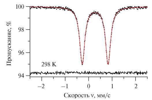 Рис. 2. Мессбауэровский спектр ядер 57Fe в манганите ScMn0.99657Fe0.004O3 при 298 К.