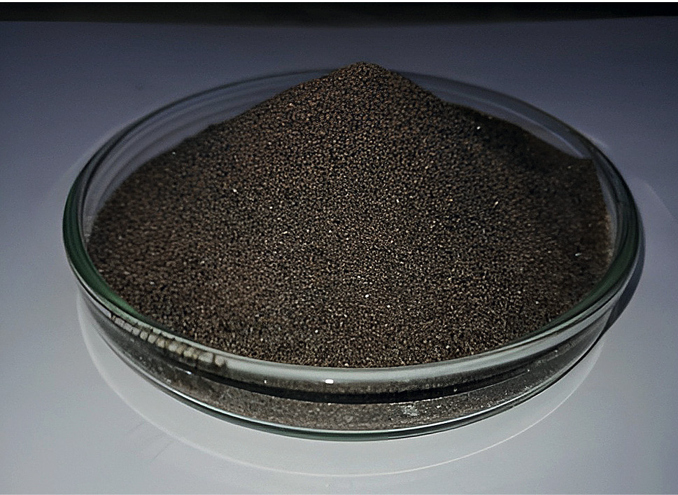 Для проведения исследований авторы в качестве исходного объекта использовали этот техногенный отход. Минеральная смесь представляет собой порошок серо-коричневого цвета (рис. 1), в состав которого входят следующие основные минеральные компоненты, мас. %: сфен – 57.5, эгирин – 25, апатит – 8.0, нефелин – 9.5, а также примеси титаномагнетита, полевых шпатов. Состав смеси по основным оксидам, мас. %: TiO2 – 28.5, CaO – 17.37, SiO2 – 30.07, P2O5 – 3.86, Al2O3 – 2.77, Fe2O3 – 3.2. В табл. 1 приведены показатели твердости (по Моосу) и плотности основных компонентов минеральной смеси [13].