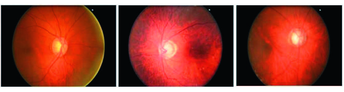 Медицинскими изображениями в офтальмологии являются снимки высокого разрешения, полученные при офтальмоскопии — неинвазивной процедуре, позволяющей оценить состояние сетчатки, хрусталика, диска зрительного нерва, глазного дна, которая проводится с помощью офтальмоскопа. Офтальмоскопия бывает двух типов: прямая (не перевернутое изображение с 15-кратным увеличением) и непрямая (перевернутое изображение с не более чем 5-кратным увеличением). Офтальмоскоп представляет собой прибор (стационарный или ручной), использующий поток направленного света и линзы для увеличения изображения. Современные офтальмоскопы также имеют возможности подключения к персональному компьютеру для вывода изображения [21]. Другим вариантом медицинского изображения в офтальмологии является снимок оптической когерентной томографии (ОКТ) — метода диагностики офтальмологических заболеваний, заключающегося в визуализации структур глаза в сверхвысоком разрешении с помощью низкокогерентной интерферометрии для получения изображений поперечного сечения сетчатки и диска зрительного нерва [22].