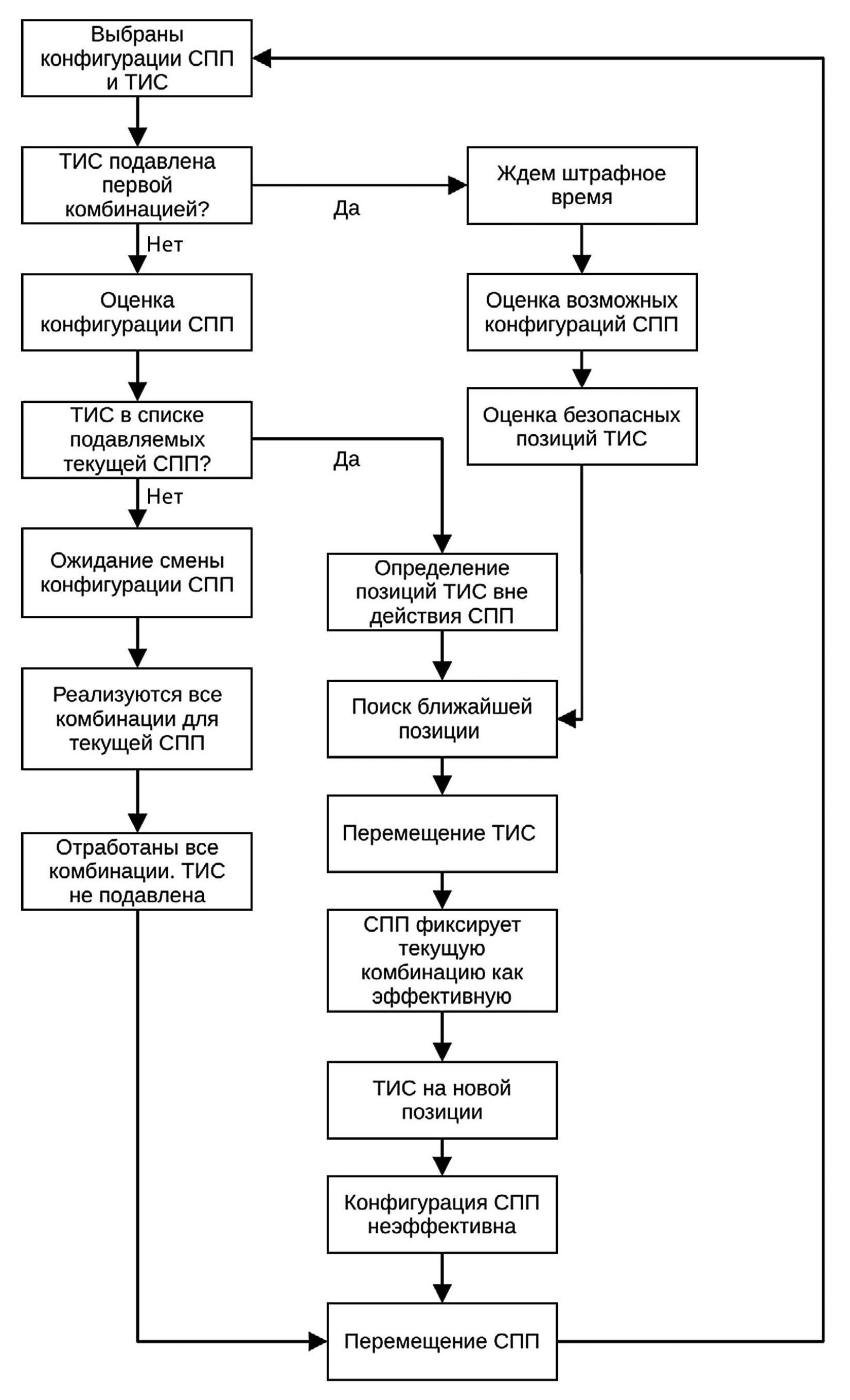 Если текущая конфигурация СПП не позволила противнику возобновить решение задачи радиомониторинга, то необходимо изменить конфигурацию СПП и осуществить постановку помехи в соответствии с новой конфигурацией.