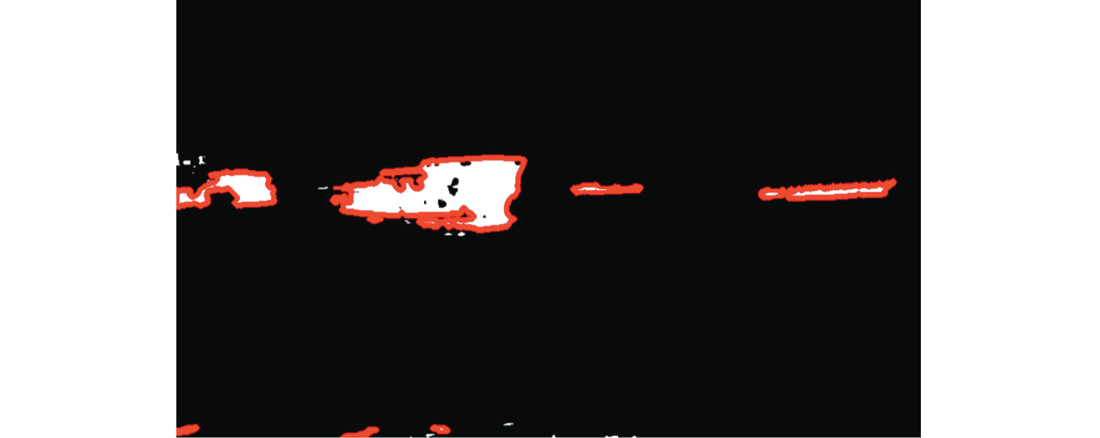 2.3. Анализ подвижных участков изображения. Вторым этапом является выделение связных компонент (контуров), их анализ и составление карты движущихся участков изображения. Для определения контуров используется алгоритм топологического структурного анализа [7]. Программная реализация алгоритма взята из библиотеки OpenCV 4.7.0. Под контуром подразумевается кривая, соединяющая все непрерывные точки вдоль границы белого объекта на черном фоне. Извлекаются только внешние контуры и сохраняются конечные точки линий, образующих контур (рис. 8). Внутренние контуры не задействуются.