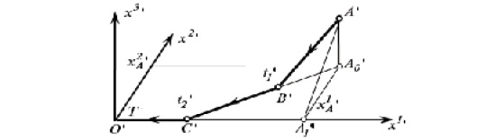 Таким образом, в случае 3) оптимальная траектория представляет собой ломаную ABCO, представленную на рис. 4 полужирными отрезками. Стрелками указано направление движения. Время T3 движения по оптимальной траектории вычисляется по формуле