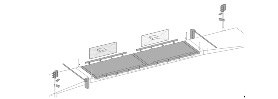 Рис. 3. Схема установки оптических измерителей на автомобильных весах.