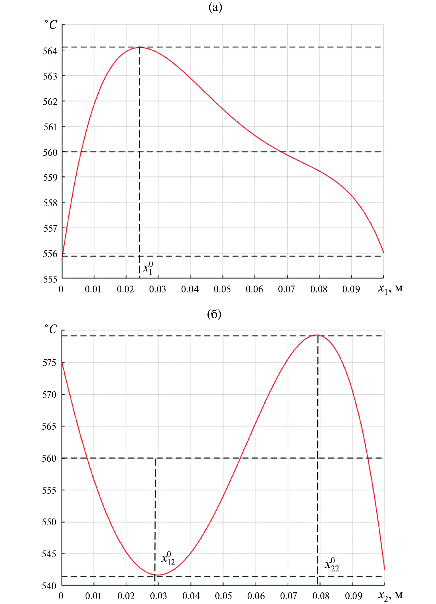 Рис. 1. Конечные температурные состояния в оптимальном процессе двухканального управления индукционным нагревом: а – Q1(x1, ), б – Q2(x2, ).