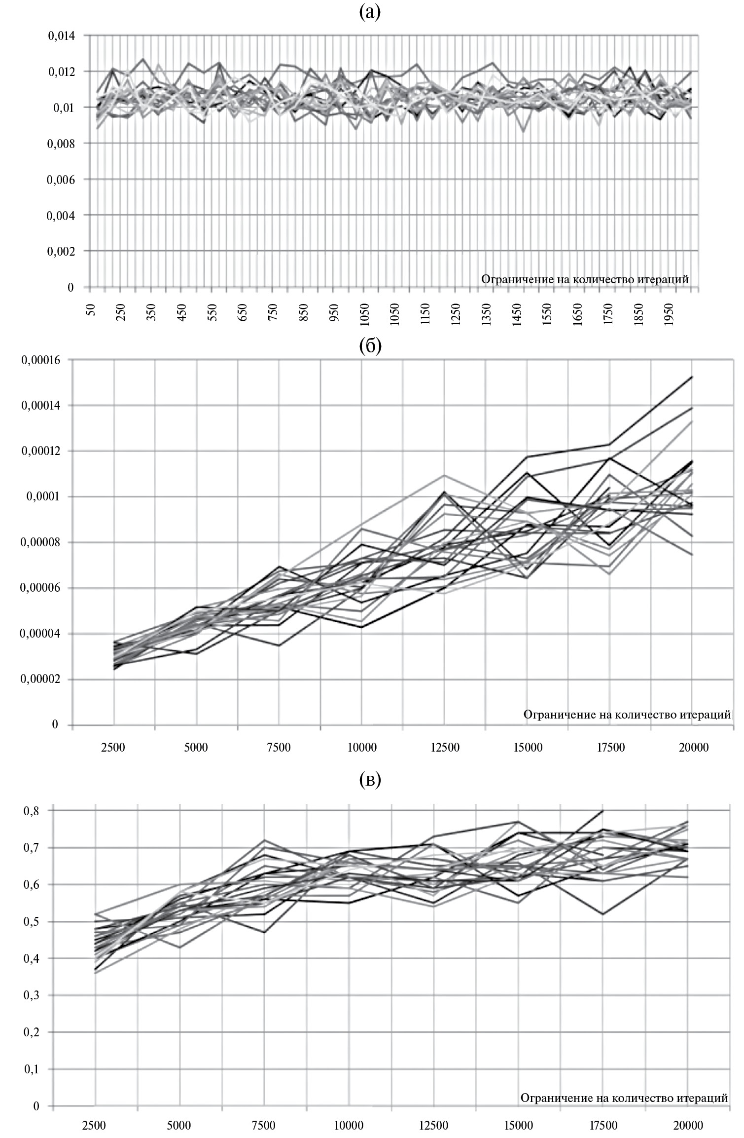 На рис. 4 показаны результаты исследования влияния различных значений параметра Q в зависимости от ограничения на количество проведенных итераций. Следует отметить статистическую неразличимость оценок, так как все они находятся в пределах доверительного интервала.
