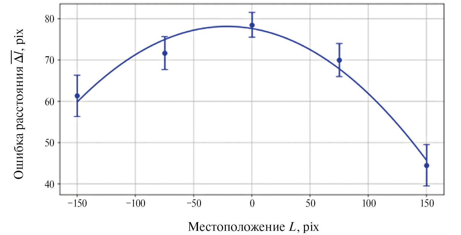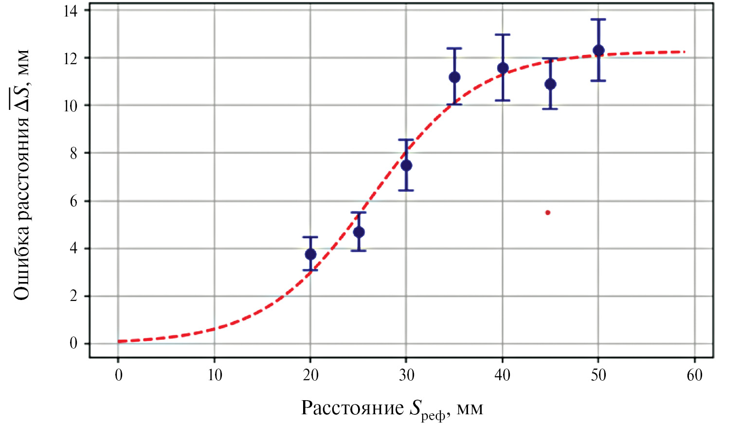 Рис. 6. Зависимость ошибки смещения от расстояния Sреф.