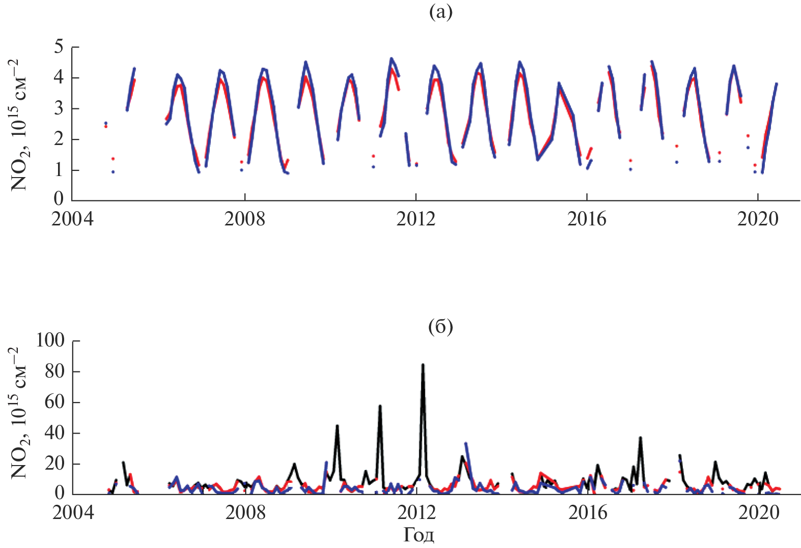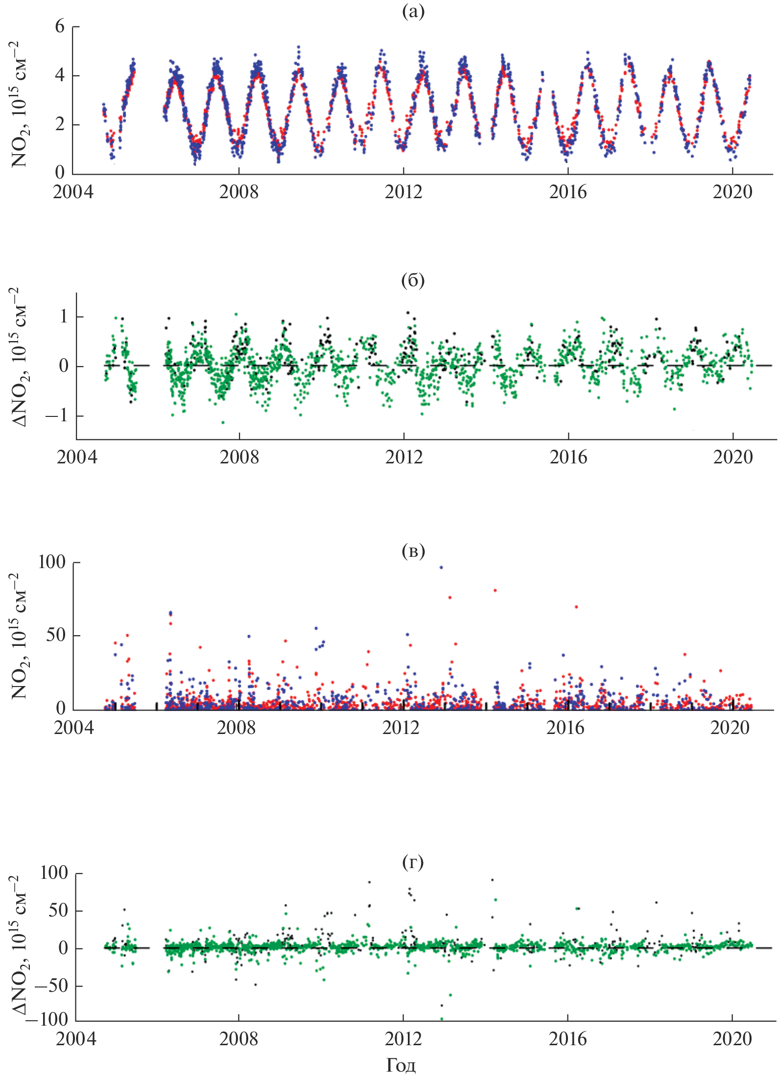 - Celarier E.A., Brinksma E.J., Gleason J.F., Veefkind J.P., Cede A., Herman J.R., Ionov D., Goutail F., Pommereau J.P., Lambert J.C., van Roozendael M., Pinardi G., Wittrock F., Schonhardt A., Richter A., Ibrahim O.W., Wagner T., Bojkov B. Mount G., Spinei E., Chen C. M., Pongetti T.J., Sander S.P., Bucsela E.J., Wenig M.O., Swart D.P.J., Volten H., Kroon M., Levelt P.F. Validation of Ozone Monitoring Instrument nitrogen dioxide columns // J. Geophys. Res. 2008. V. 113. № D15S15. https://doi.org/10.1029/2007JD008908