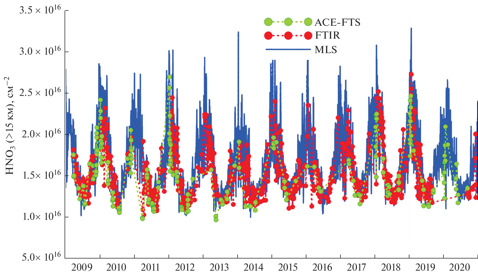 - Rinsland C.P., Zander R., Demoulin P. Ground-based infrared measurements of HNO3 total column abundances: Long-term trend and variability // J. Geophys. Res. Atmos. 1991. V. 96. P. 9379–9389.