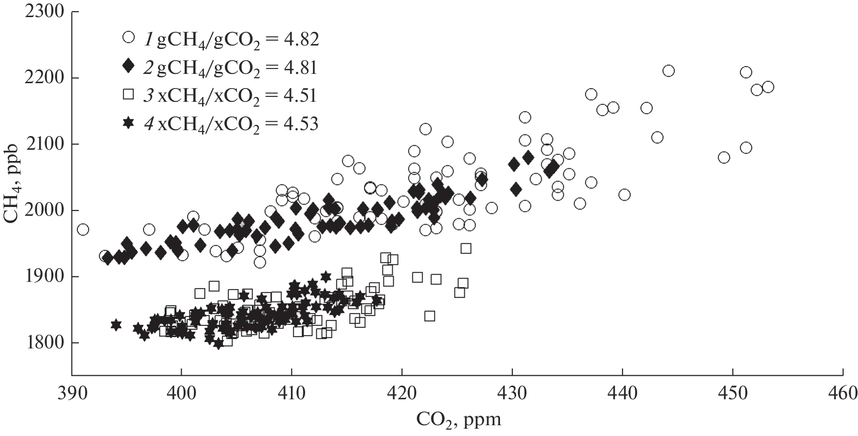 - Baranov Yu.I., Baranova E.L., Bougrim G.I., Kashin F.V. Temporal variability of methane, carbon oxide and dioxide and dinitrogen oxide in surface air // Proc. SPIE. 2000. V. 4341. P. 438–442.