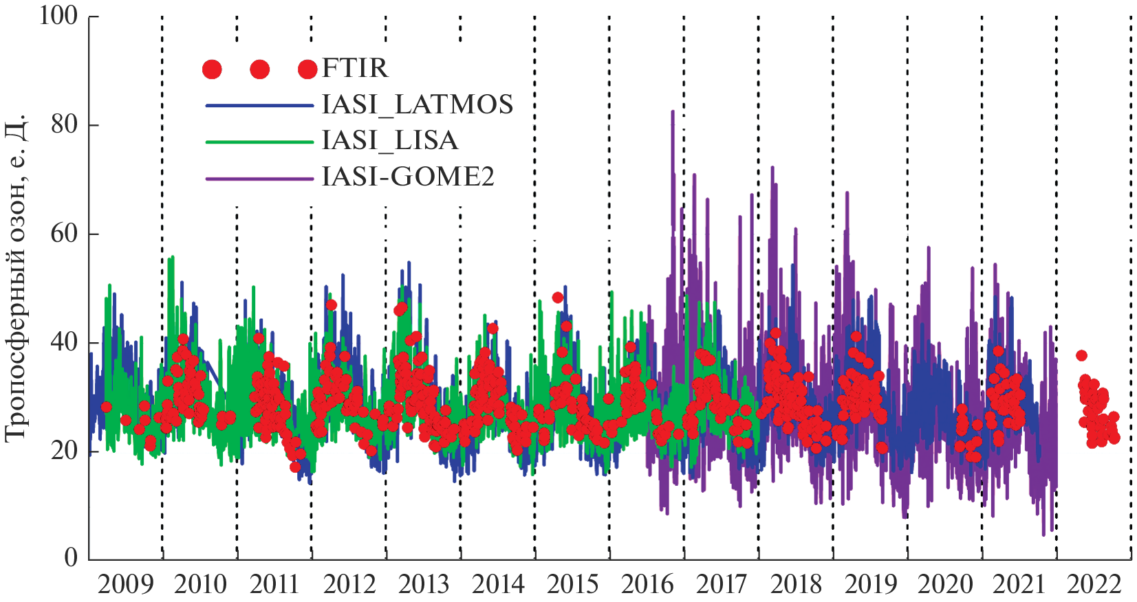 - Wespes C., Hurtmans D., Emmons L.K., Safieddine S., Clerbaux C., Edwards D.P., Coheur P.-F. Ozone variability in the troposphere and the stratosphere from the first 6 years of IASI observations (2008–2013) // Atmos. Chem. Phys. 2016. V. 16. № 9. P. 5721–5743.
