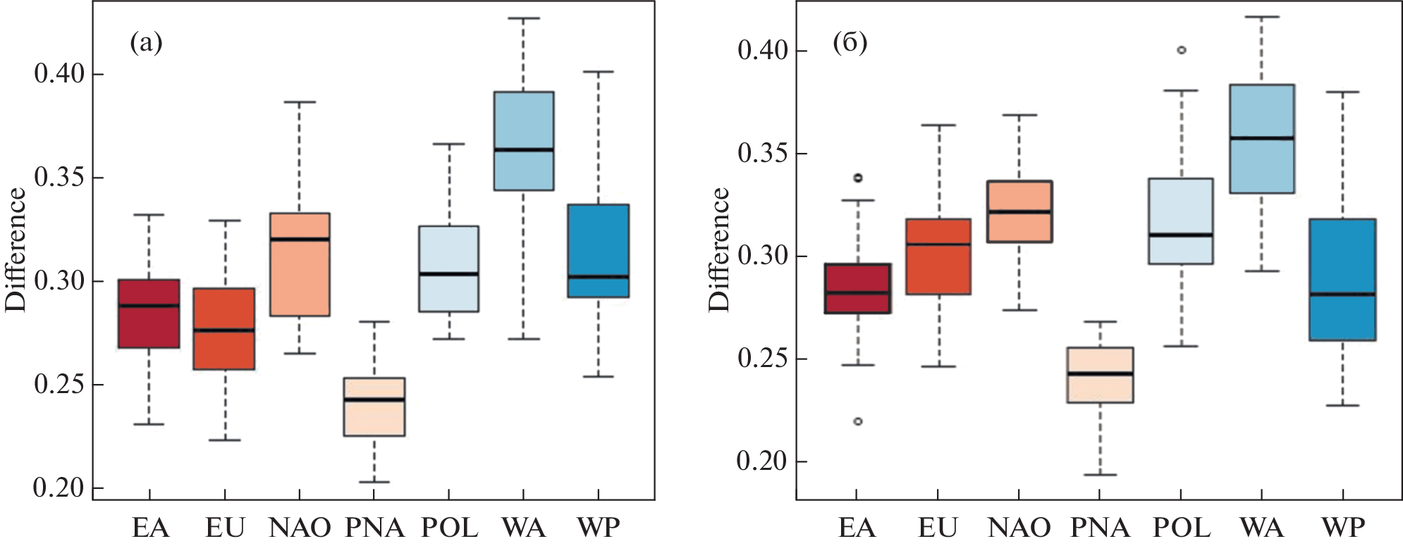- Barnston A., Livezey R.E. Classification, seasonably and persistence of low frequency atmospheric circulation patterns // Mon. Wea. Rev. 1987. V. 115. P. 1083–1126.