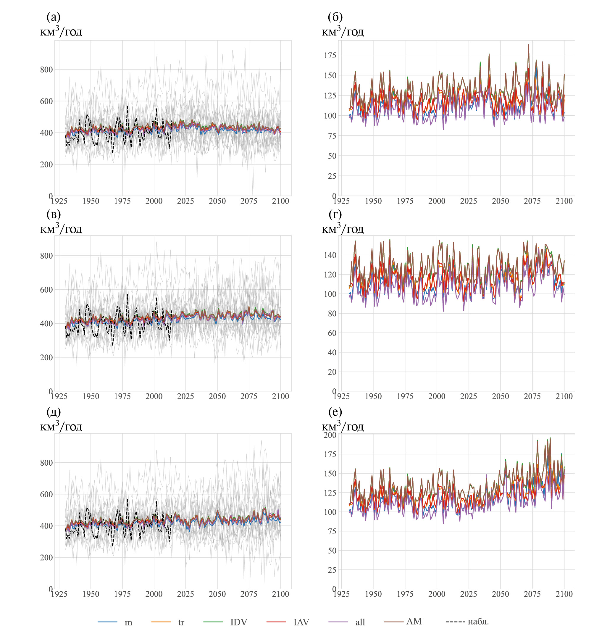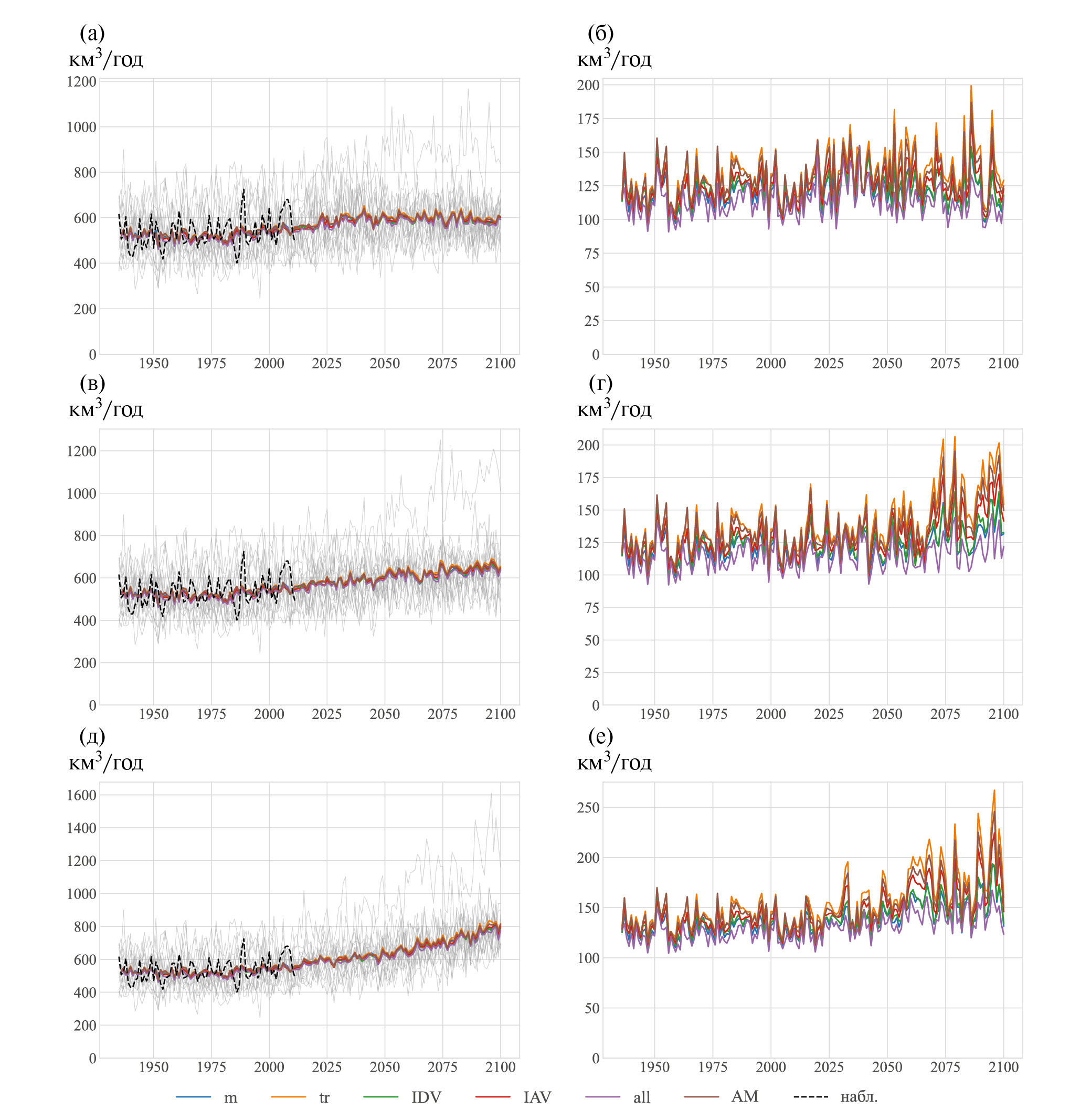 СКО междесятилетней изменчивости стока, км3 год–1 | 27 | 44 | 45 | 50 | 48 | 5 |