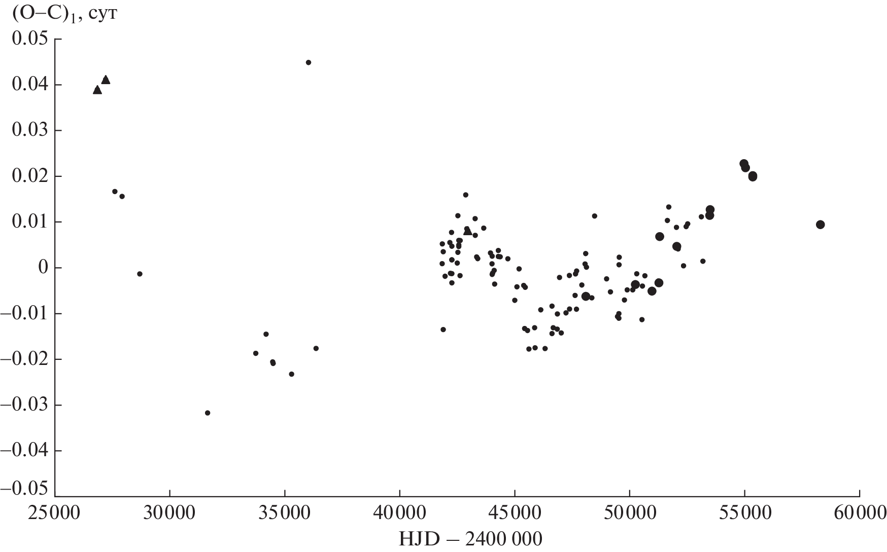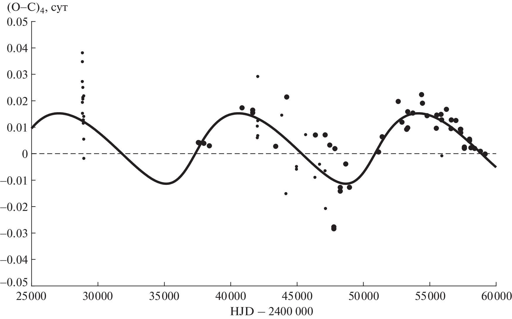 Проведен анализ изменений орбитального периода затменно-двойных систем RX Ari и V449 Oph. Показано, что изменения периода RX Ari можно представить суперпозицией векового увеличения периода и двух циклических изменений. Вековое увеличение периода можно объяснить обменом веществом между компонентами. Циклические изменения периода могут быть следствием присутствия в системе двух дополнительных тел либо только одного дополнительного тела в сочетании с магнитной активностью главного компонента. Изменения орбитального периода V449 Oph с почти одинаковой точностью можно представить либо суперпозицией двух циклических изменений, либо суперпозицией векового увеличения периода и двух циклических изменений. Полученные параметры световых уравнений и магнитные величины приводят к выводу, что для представления изменений орбитального периода V449 Oph предпочтительнее использовать линейные элементы. В этом случае одно из циклических изменений может быть следствием светового уравнения, а второе – следствием магнитной активности вторичного компонента. Следствием магнитной активности вторичного компонента могут быть также оба вида колебаний.