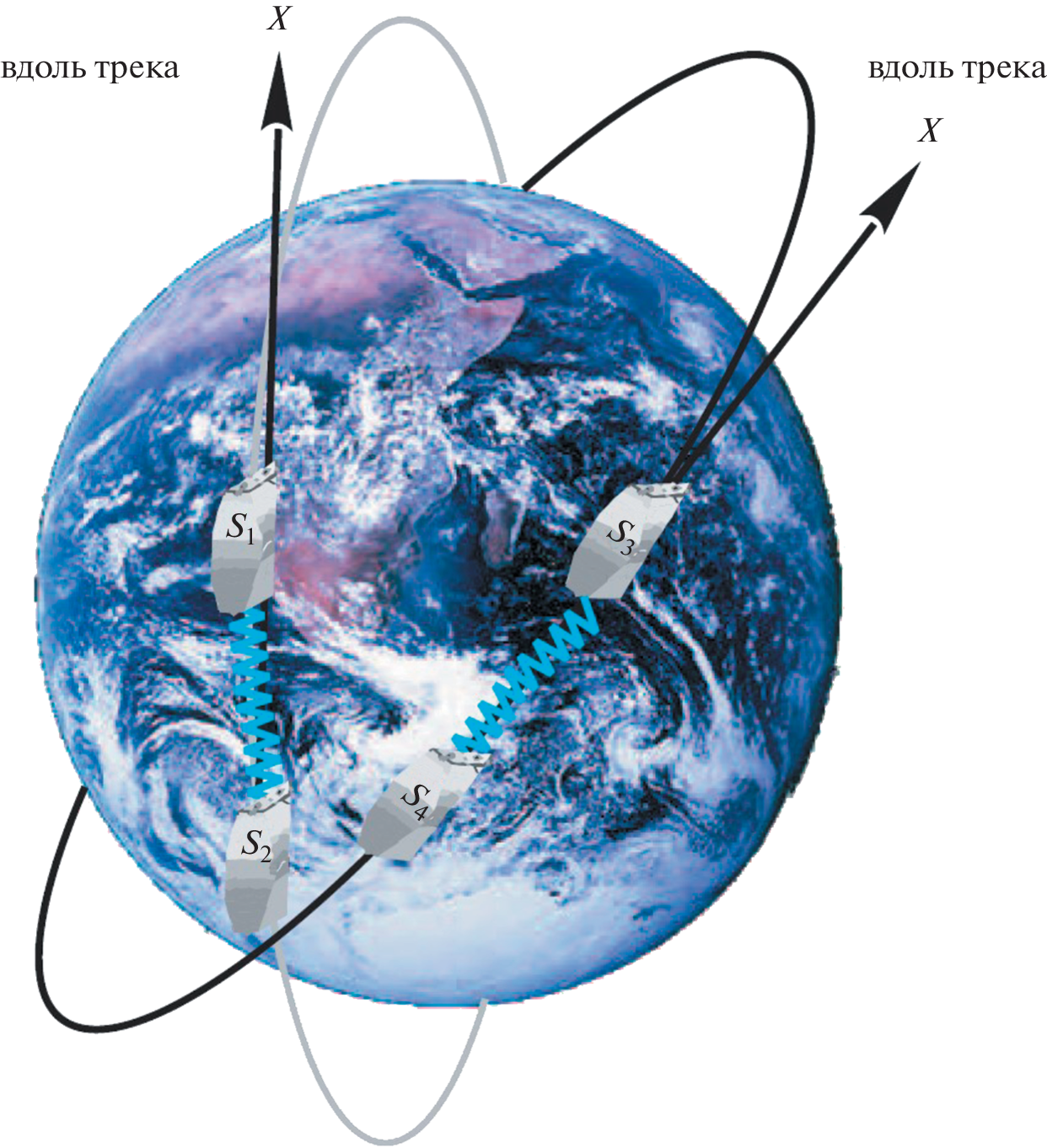 We study potential possibilities of space constellation consisting of two pairs of spacecraft moving in different orbits, the so-called next generation gravity missions, aimed at increasing the spatial and temporal resolution of measurements and improving the accuracy of the recovery of the Earth’s gravity field. As a result of numerical simulation of the orbital motion of the multiple spacecraft constellation and solving the inverse problem of recovering the Earth’s gravitational field based on model measurements performed in this constellation, a multiple configuration with orbital parameters \(h = 370\) km, \(i = 90.5^\circ \) and \(h = 370\) km, \(i = 70.0^\circ \), was found. Such a multiple constellation makes possible to increase both the spatial and temporal resolution of the Earth’s gravity field models with a significant refinement of zonal, sectorial and tesseral harmonics compared to the one-pair near-polar configuration.