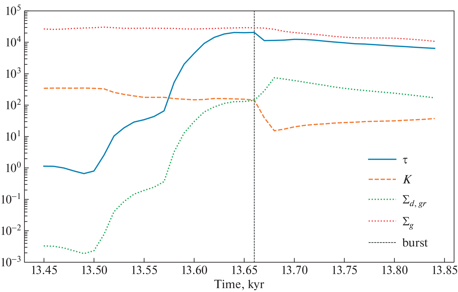 - O. P. Stoyanovskaya, F. A. Okladnikov, E. I. Vorobyov, Y. N. Pavlyuchenkov, and V. V. Akimkin, Astron. Rep. 64, 107 (2020), arXiv:2102.09155 [astro-ph.EP].
