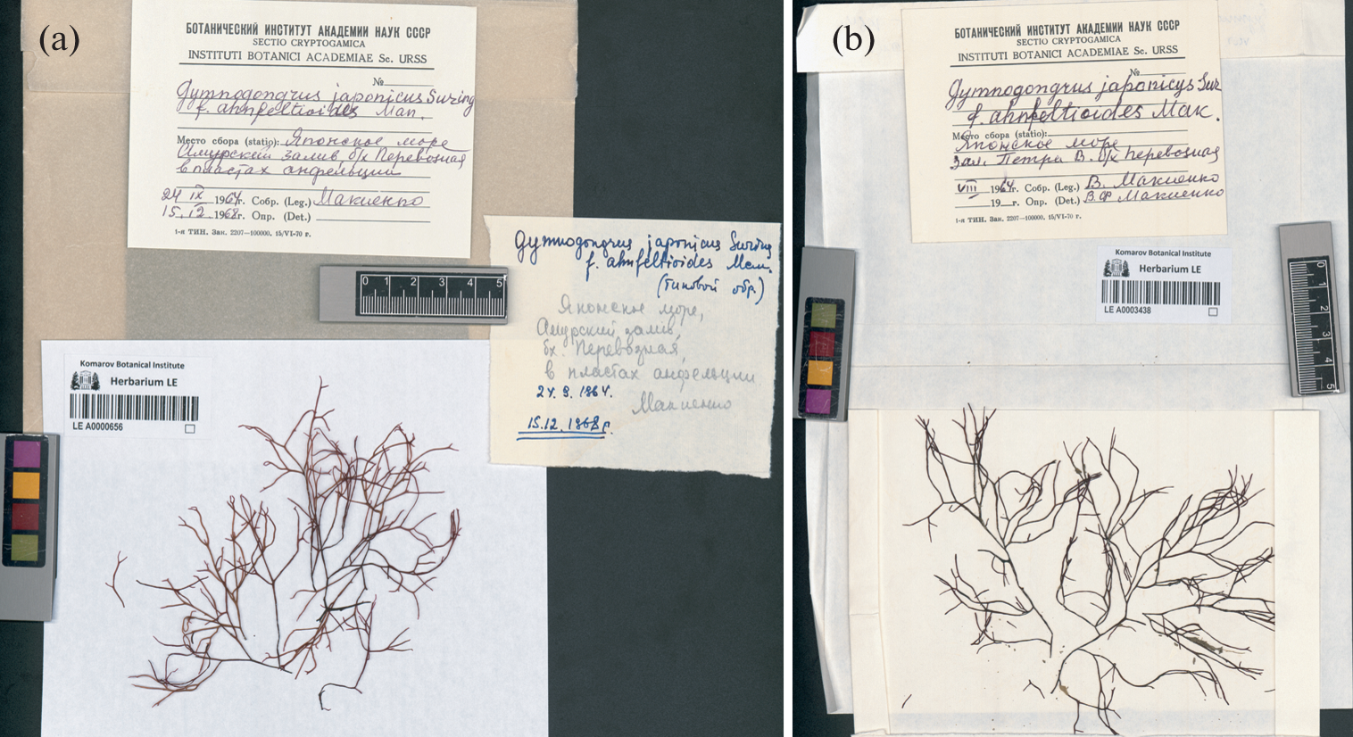 - Makijenko V.F. 1970. Species generis Gymnogongrus Mart. ad oram Sovjeticam marium Orientis extremi inventae. – Novosti Sist. Nizsh. Rast. 7: 91–99 (In Russ.).