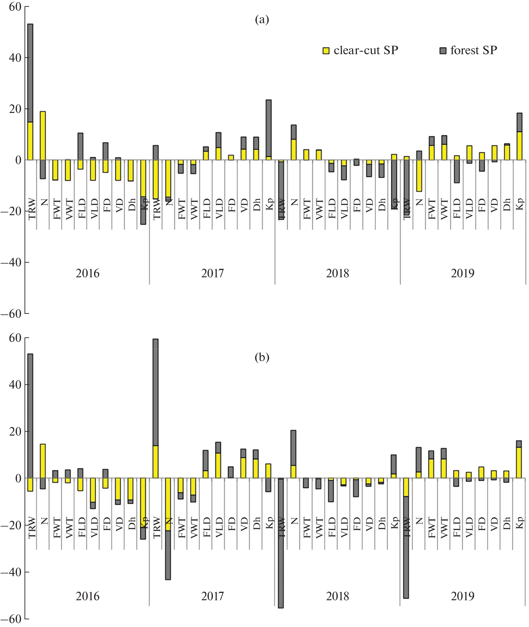 - Pridacha V.B., Sazonova T.A., Novichonok E.V., Semin D.E., Tkachenko Yu.N., Pekkoev A.N., Timofeeva V.V., Bakhmet O.N., Olchev A.V. 2021. Clear-cutting impacts nutrient, carbon and water exchange parameters in woody plants in an east Fennoscandian pine forest. – Plant Soil. 466: 317–336. https://doi.org/10.1007/s11104-021-05058-w