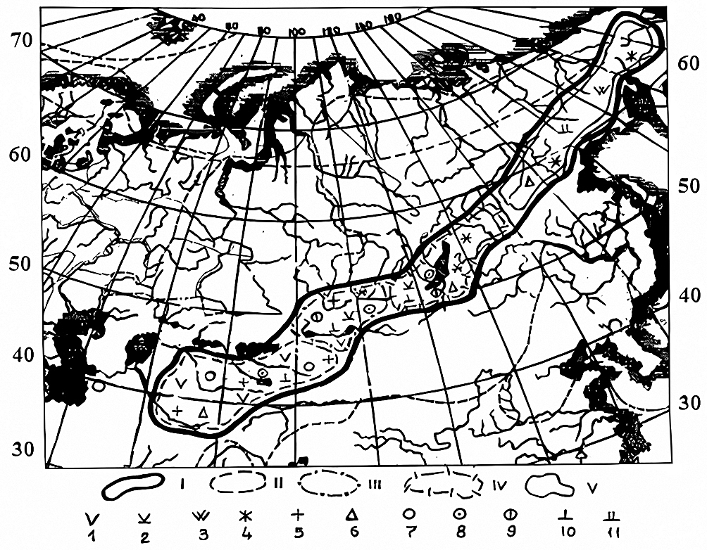 Таким образом, в результате рассмотрения особенностей распределения горных степей и сообществ ксеротермных флороценотипов на громадном по протяженности поясе гор Евразии (35–67° с.ш., 72–163° в.д.), необходимо отметить их разнообразие и контрастность, гетерогенность флористического состава сообществ с участием множества эндемичных и реликтовых видов. Огромен миграционный потенциал территории, по сути, являющейся трассой перемешивания и последующей трансформации флор. Важнейшими являются вопросы филоценогенеза – исторического ее развития. Поэтому раскрытие данного аспекта становится ключевым, поскольку предполагает глубокое рассмотрение всего разнообразия видов в ценокомплексах горных степей – преобладающих экобиоморф, доминантов и эдификаторов сообществ.