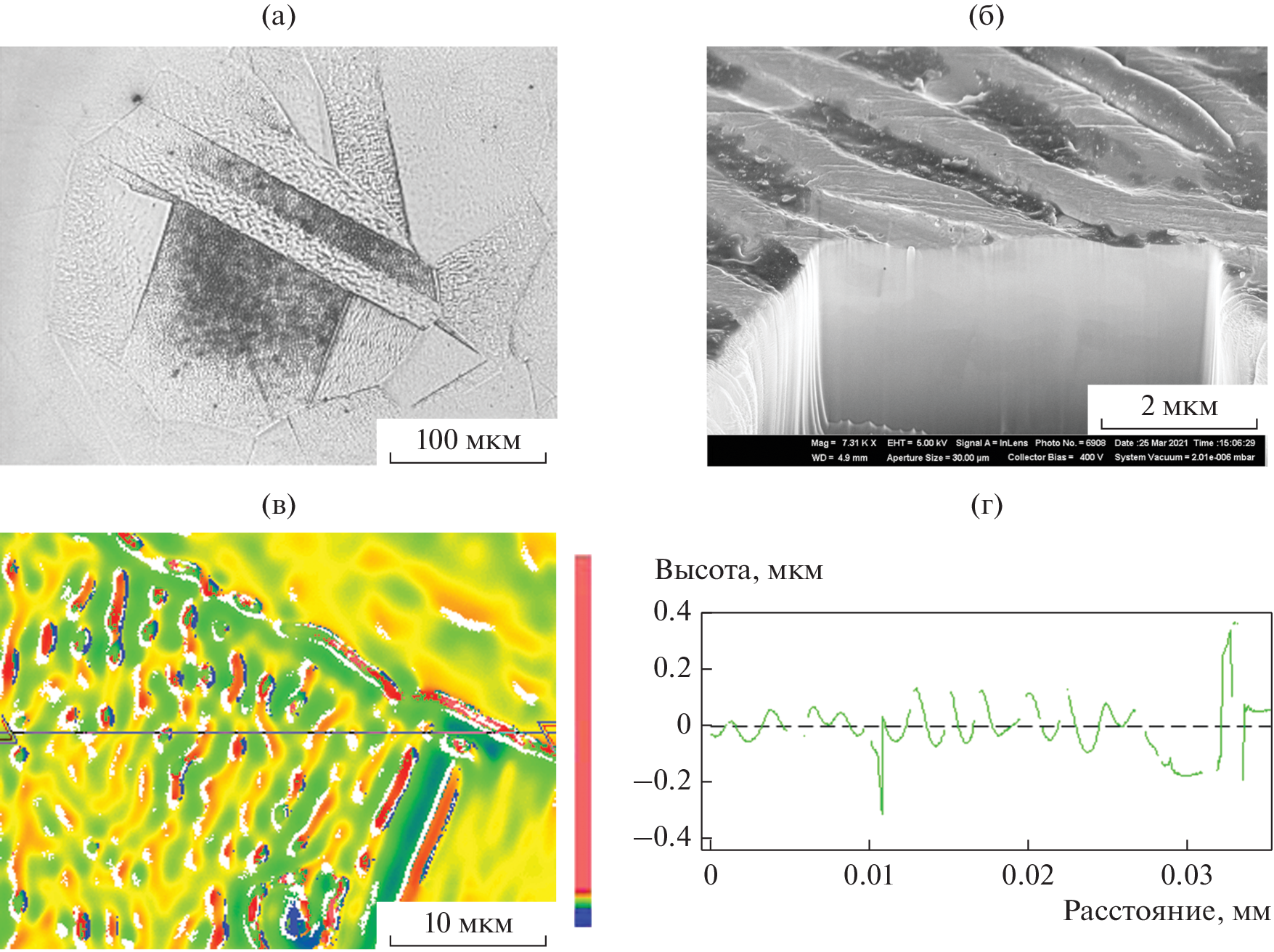 - Малинский Т.В., Миколуцкий С.И., Рогалин В.Е., Хомич В.Ю., Ямщиков В.А., Каплунов И.А., Иванова А.И. Пластическая деформация меди в результате воздействия мощного ультрафиолетового наносекундного лазерного импульса // Письма в ЖТФ. 2020. Т. 46. № 16. С. 51–54. https://doi.org/10.21883/PJTF.2020.16.49856.18157