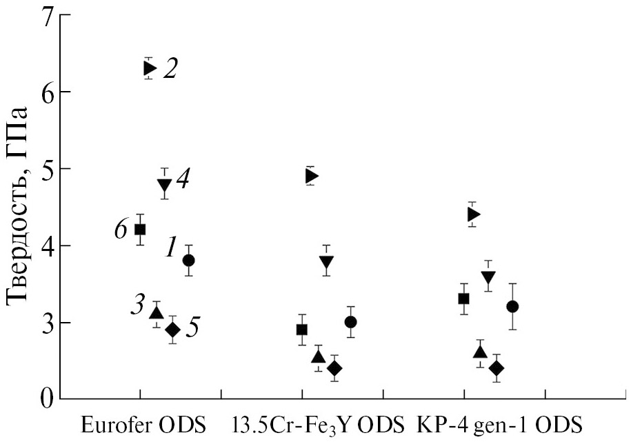 - Swenson M.J., Dolph C.K., Wharry J.P. The effects of oxide evolution on mechanical properties in proton- and neutron-irradiated Fe-9%Cr ODS steel // J. Nucl. Mater. 2016. V. 479. P. 426–435.