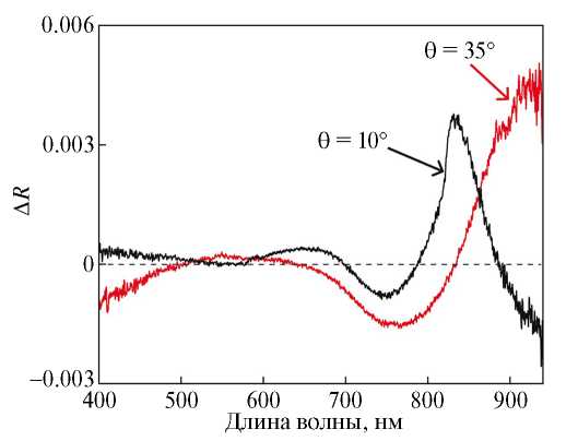 Для данного образца было проведено сравнение экспериментальных спектров ∆R при углах падения θ = 10° и θ = 35° (рис. 4).
