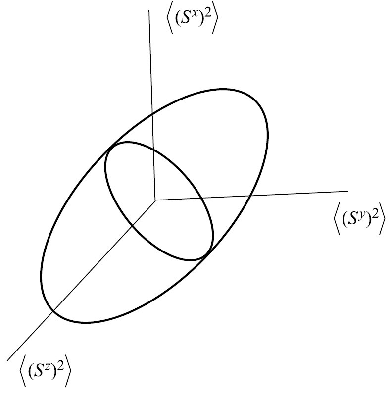 Включение внешнего поля приводит к тому, что геометрическим образом данного состояния в спиновом пространстве становится двухосный эллипсоид (рис. 3) с осями: