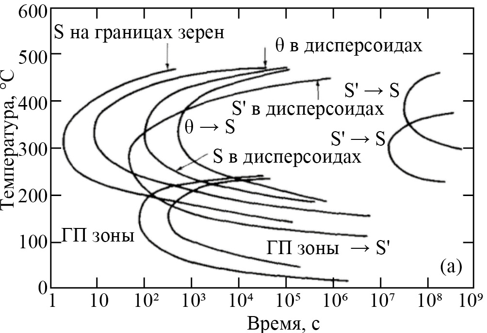 Рис. 10. Диаграмма изотермического распада переохлажденного и пересыщенного твердого раствора в сплаве А2024 [24].