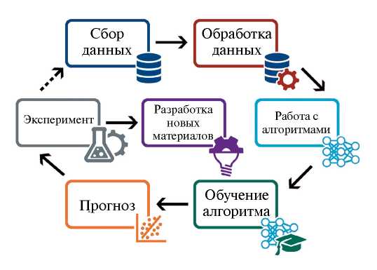Рис. 2. План стандартного исследования, направленного на разработку новых материалов, путем разработки моделей для прогнозирования их свойств.